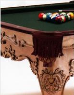 Как и в любом виде спорта в бильярде имеются свои эксклюзивные вещи. В первую очередь это, конечно, бильярдные столы. Причем условно их можно разделить на 2 категории. Первая категория – бильярдные столы, изготовленные в единичных или нескольких экземплярах по индивидуальным заказам из лучших пород дерева. То есть эксклюзивность такого стола целиком определяется качеством и оригинальным внешним видом. Вторая категория – столы, обладающие оригинальным дизайном и украшенные драгоценными металлами. Если на столах первой категории вполне можно играть, то на столах с серебряными или золотыми инкрустациями играть как-то страшновато. А вдруг что сломается.